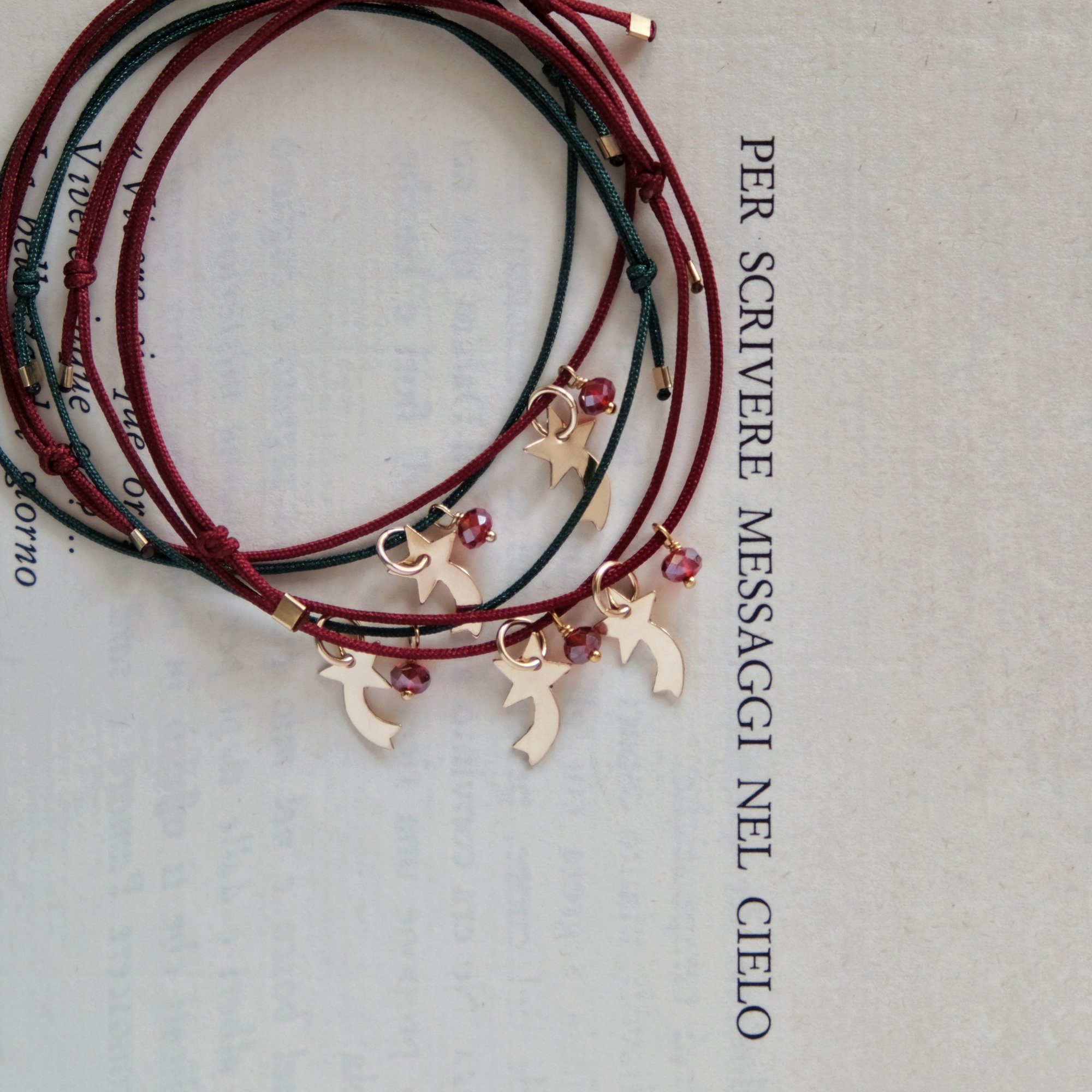 Come una piccola piega fatta sulla pagina di un libro in cui abbiamo trovato una frase da non dimenticare, così un braccialetto portafortuna può essere il segnalibro di quel desiderio espresso quando l'abbiamo indossato al polso, un momento di magia da condividere durante un viaggio tra amiche, il ricordo di un giorno importante, uno di quei regali scelti senza che ci sia necessariamente un perché ma donati unicamente per sorprendere e regalare un sorriso.